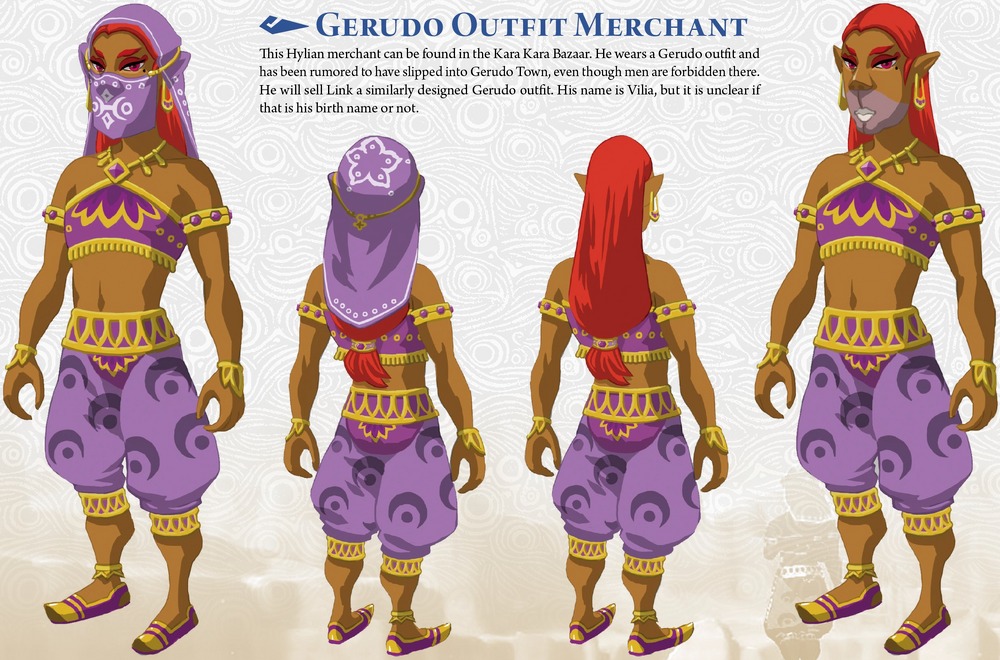 During Link’s adventure, he has to gain access to the Gerudo village, a village that can only be entered by women. While investigating ways to infiltrate the outpost, you hear some gossip that a man has somehow been able to sneak into Gerudo village. You soon find out that this was referring to Vilia, a character who identifies as a woman. When asked about a man who sneaks into Gerudo village, she denies that has happened, and you can either follow that up later by pretending to flirt with her or accuse her of being a man… something that a lot of TERFs do to a lot of trans people.