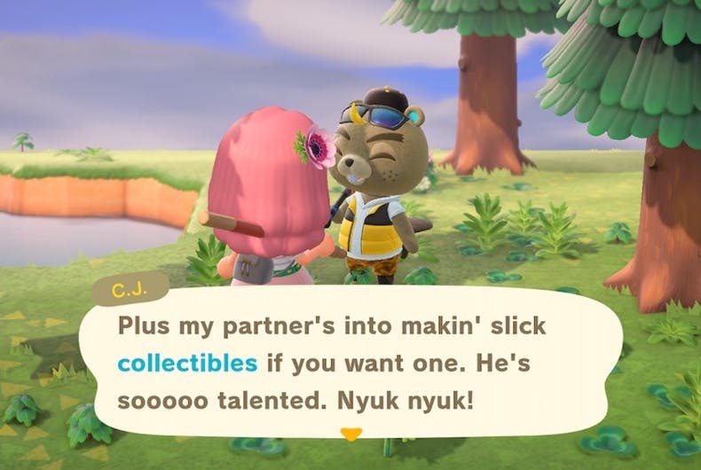 Though I did mention that Animal Crossing doesn’t really focus on relationships, there are a few characters who may hint towards relationships of their own. An evident example in New Horizons being Flick and CJ. Many fans have speculated whether or not the two may be an item, especially since CJ declares his admiration towards his ‘partner’, Flick, when he sends you your statue commissions. Regardless of this, the official Animal Crossing New Horizons Companion Guide states that they are simply ‘roomates and business partners’, shutting down the hopes of Animal Crossing’s first openly gay relationship. Some would even argue that this could be a form of queerbaiting, hinting towards LGBTQ+ representation without actually following through.